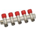 Колектор кутовий Ø1" x 2 виходи x 3/4" EK (червоні ручки) нікель (C322N12QR)