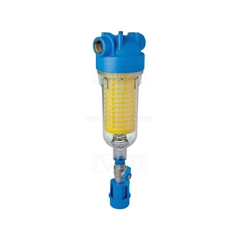 Очищення просто і легко: це можна здійснювати вручну, відкривши зливний кульовий кран на дні фільтра, або автоматично за допомогою спеціального комплекту kit auto. Ефективність процесу гарантується зливною системою, призначеною для блокування зворотного потоку води, що виводиться.